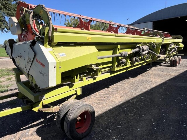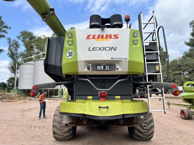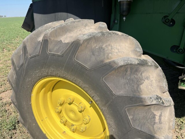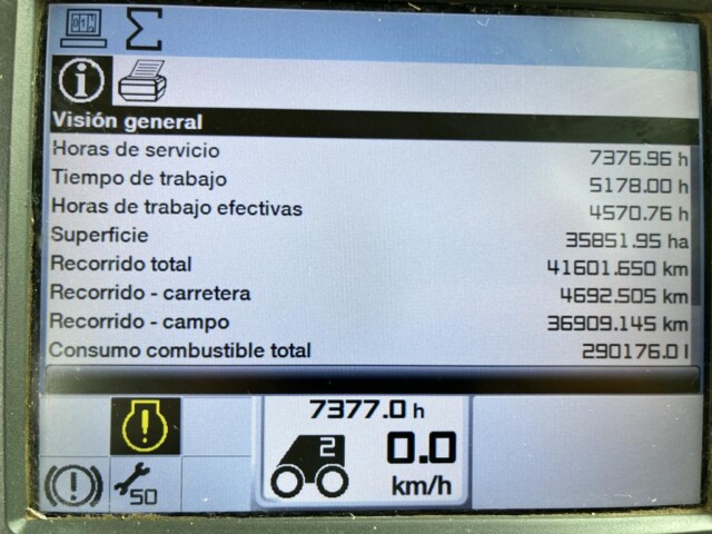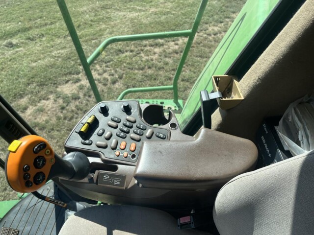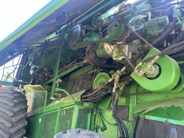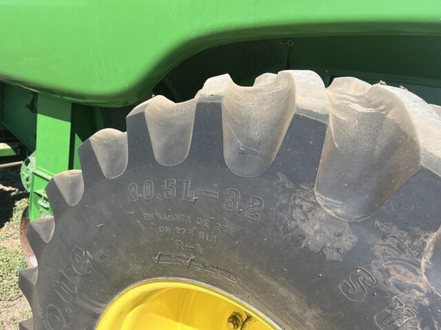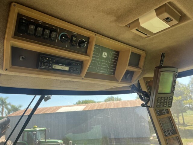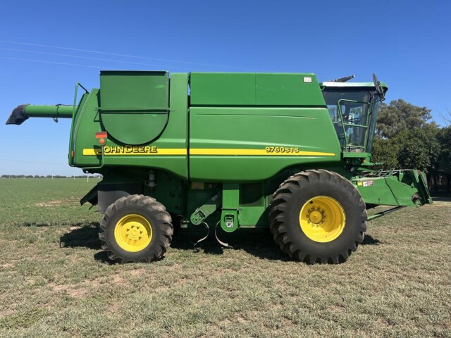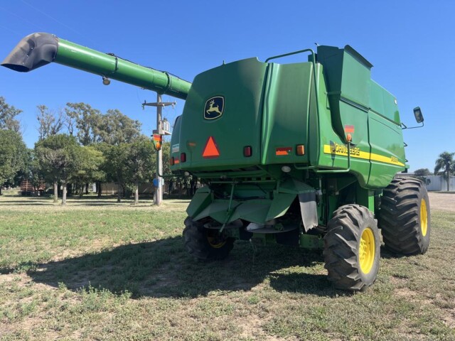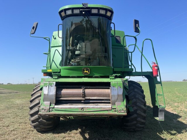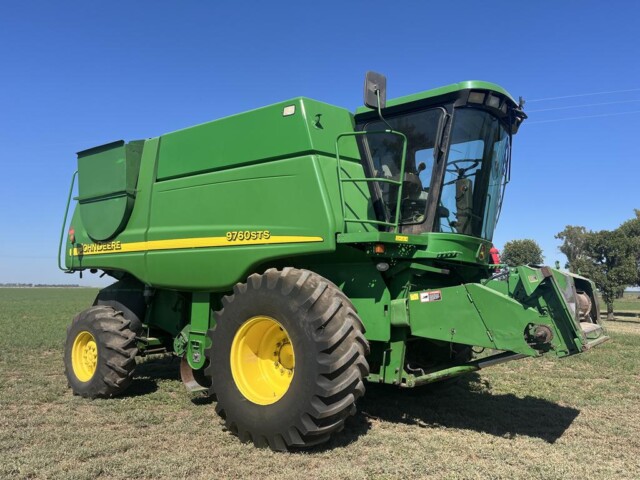 Cosechadora John Deere 9760 sts, año 2003, motor con 2000 horas de reparado completo en Agencia Oficial y 9450 horas de trilla, cub. tras. 18.4.26 70% y del. 30 5l 32 en 80%., tolva cambiada en 2023 de 6000 kg capacidad y resto de la maquina reparada completa en 2023 con norias nuevas, plataforma de 30 pies año 2021 con piso acero inox., caño y peine nuevos