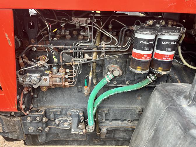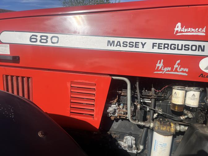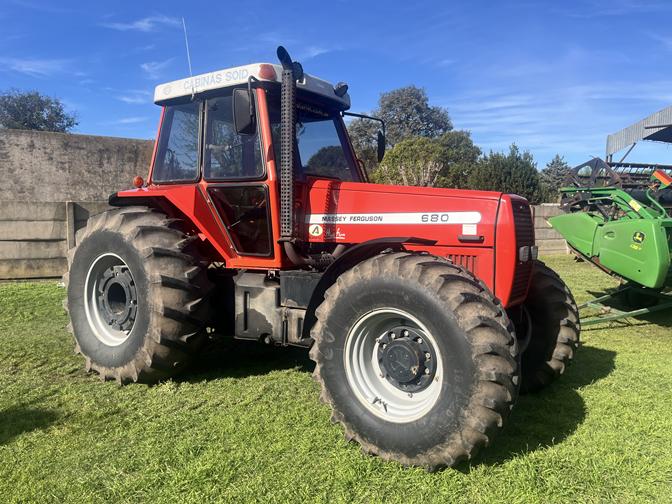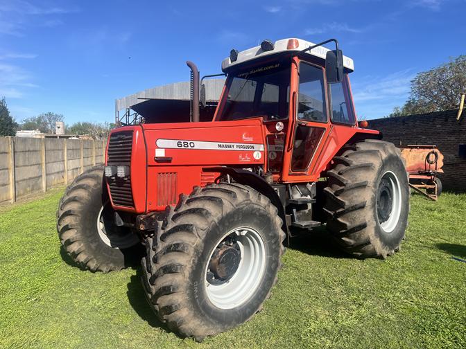 Tractor Massey Ferguson 680 DT, motor Perkins turbo 180 HP., cubiertas tras. 24.5-32 en 80% y del. 18.4-26 en 30%, 2 sal. hid., t. fza