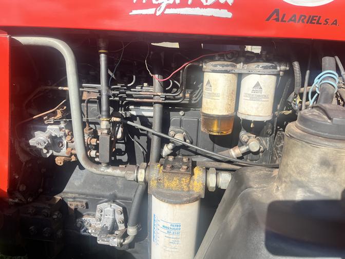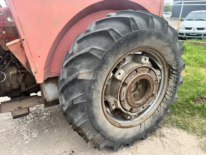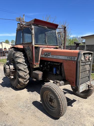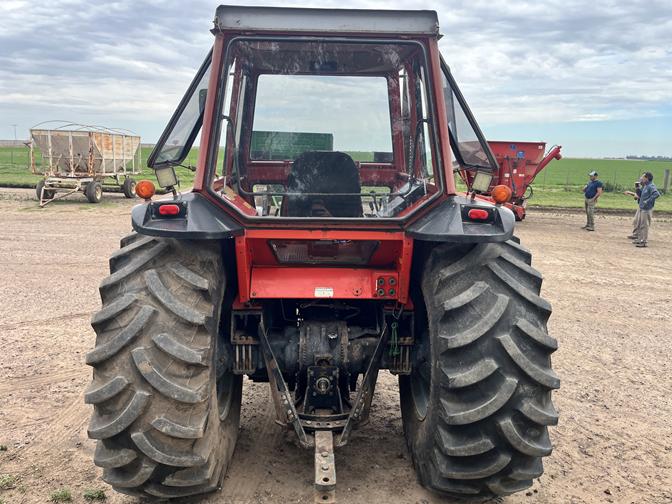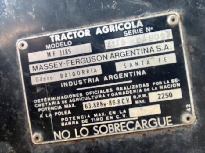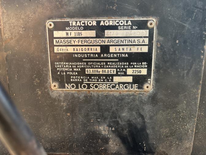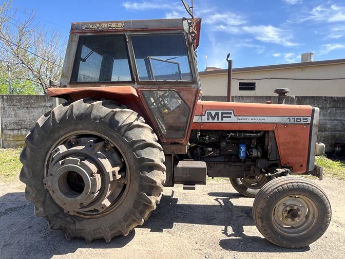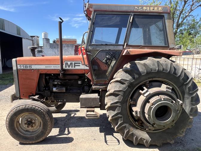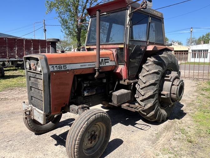 Tractor Massey Ferguson 1185, cabina, 2 sal. hid., toma fuerza, cubiertas 18.4-30 en 80% y del. 750-18 en 50%.-