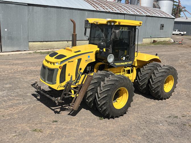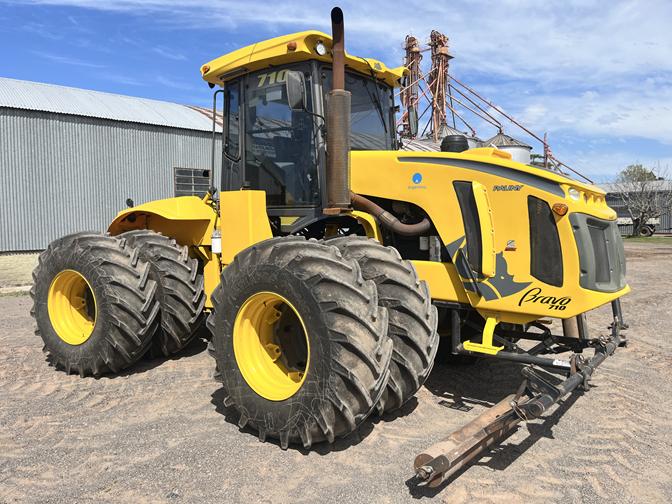 Tractor Pauny Bravo 710, año 2021, motor de 310 HP con 1448 horas, piloto Trimble, 8 cubiertas duales 23.1-30 en 75%, pisa palos, 3 sal. hid., toma de fuerza.