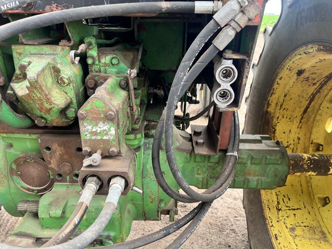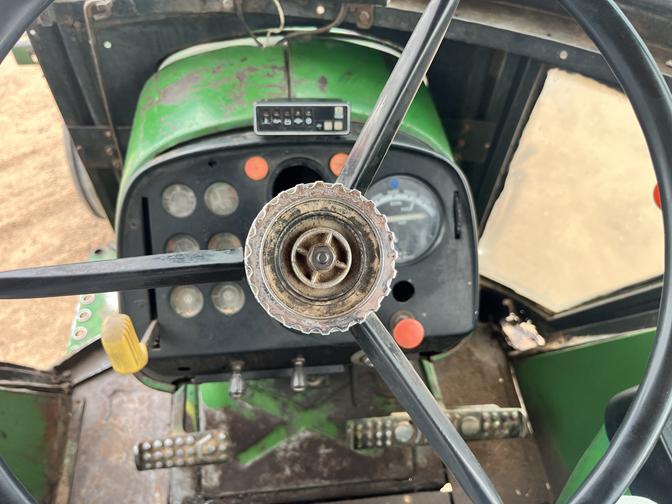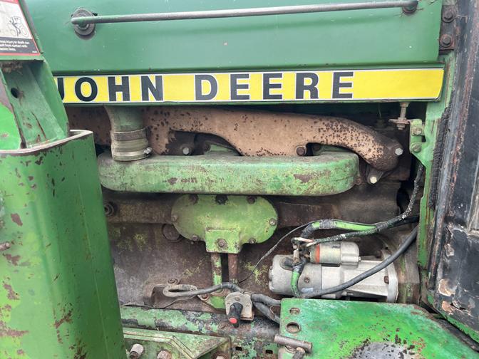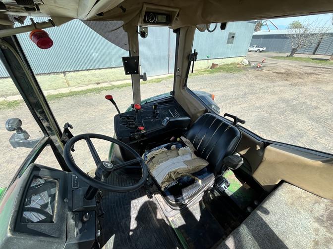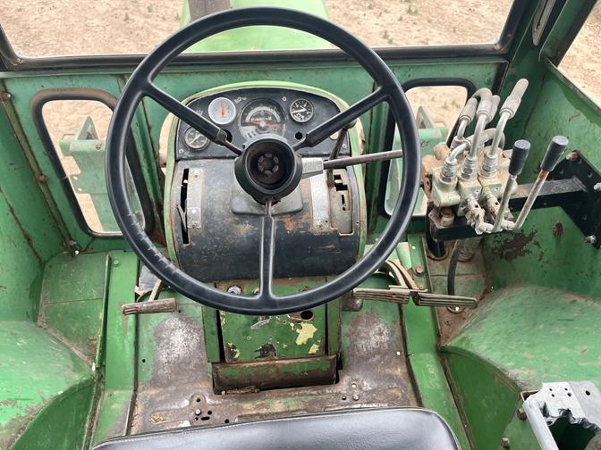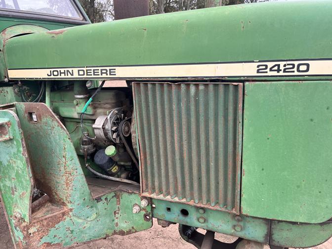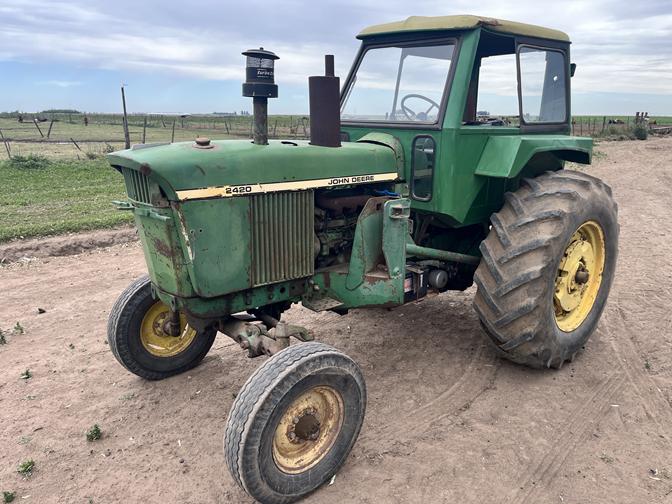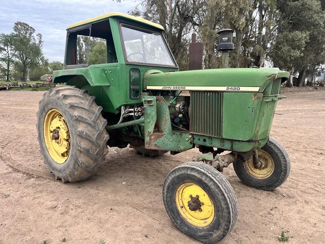 Tractor John Deere 2420, cabina, cubiertas tras. 18.4-30 y del. 750-16, sal. hid., toma fuerza.-