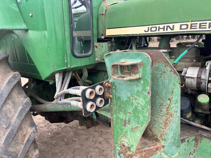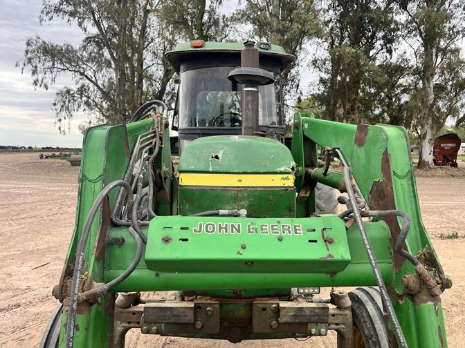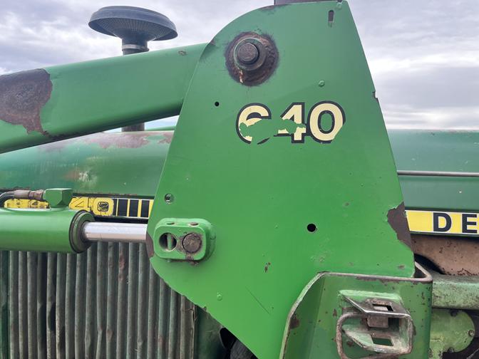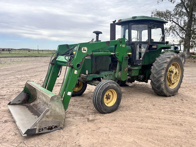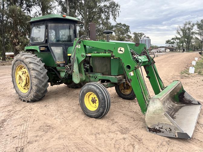 Tractor John Deere 4040 con pala JD 640, cabina Vignone, cub. traseras 18.4-34 en 60% y del. 1000-16 en 80%, 2 sal. hid., toma de fuerza.-