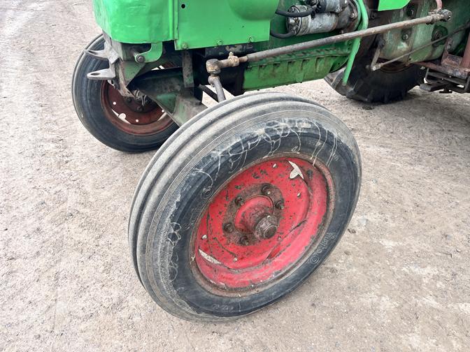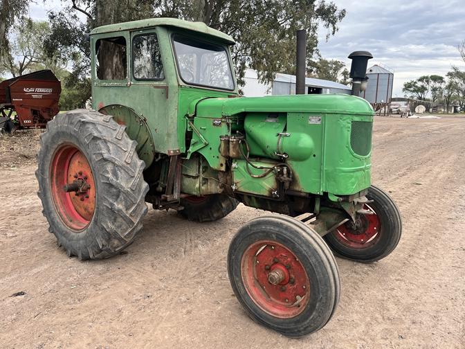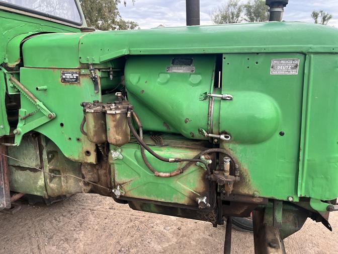 Tractor Deutz A65, cabina, hidráulico en punta de cigüeñal, caja alta y baja, cubiertas tras. 18.4-34 en 50%.-