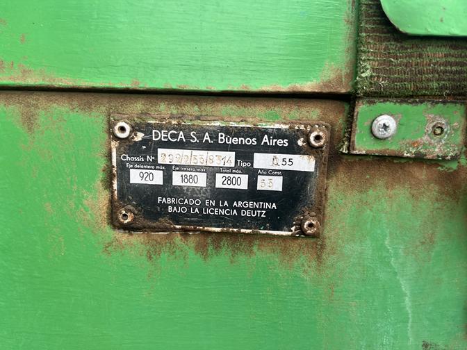 Tractor Deutz A55, cabina, cubiertas 18.4-34 en 15% y del. 650-20 en 90%, toma fuerza.-